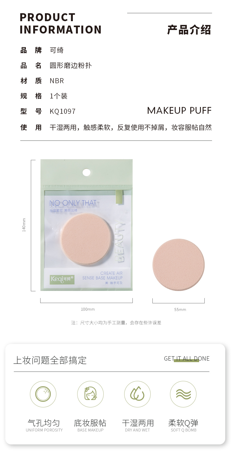 KQ1097 圓形磨邊粉撲